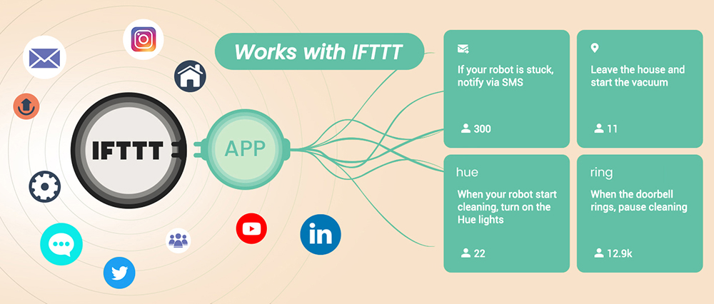 Kompatibilis a Vactidy APP-val a távirányítóhoz, és együttműködik az Alexa, a Google Home és az IFTTT hangutasításokkal, zökkenőmentes intelligens otthoni takarítási élményt biztosítva.