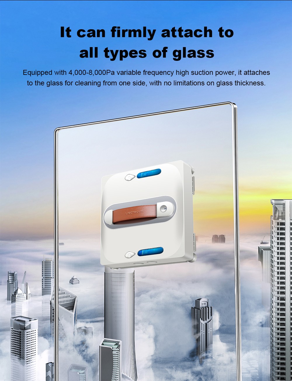 \nErős szívóerőt biztosít a stabil tapadás és a mélytisztítás érdekében.Légszivárgás-érzékelővel, tartalék akkumulátorral (30 perc tartási idő) és hosszú biztonsági kötéllel van felszerelve, hogy teljes biztonságot nyújtson áramkimaradás vagy váratlan helyzet esetén is.