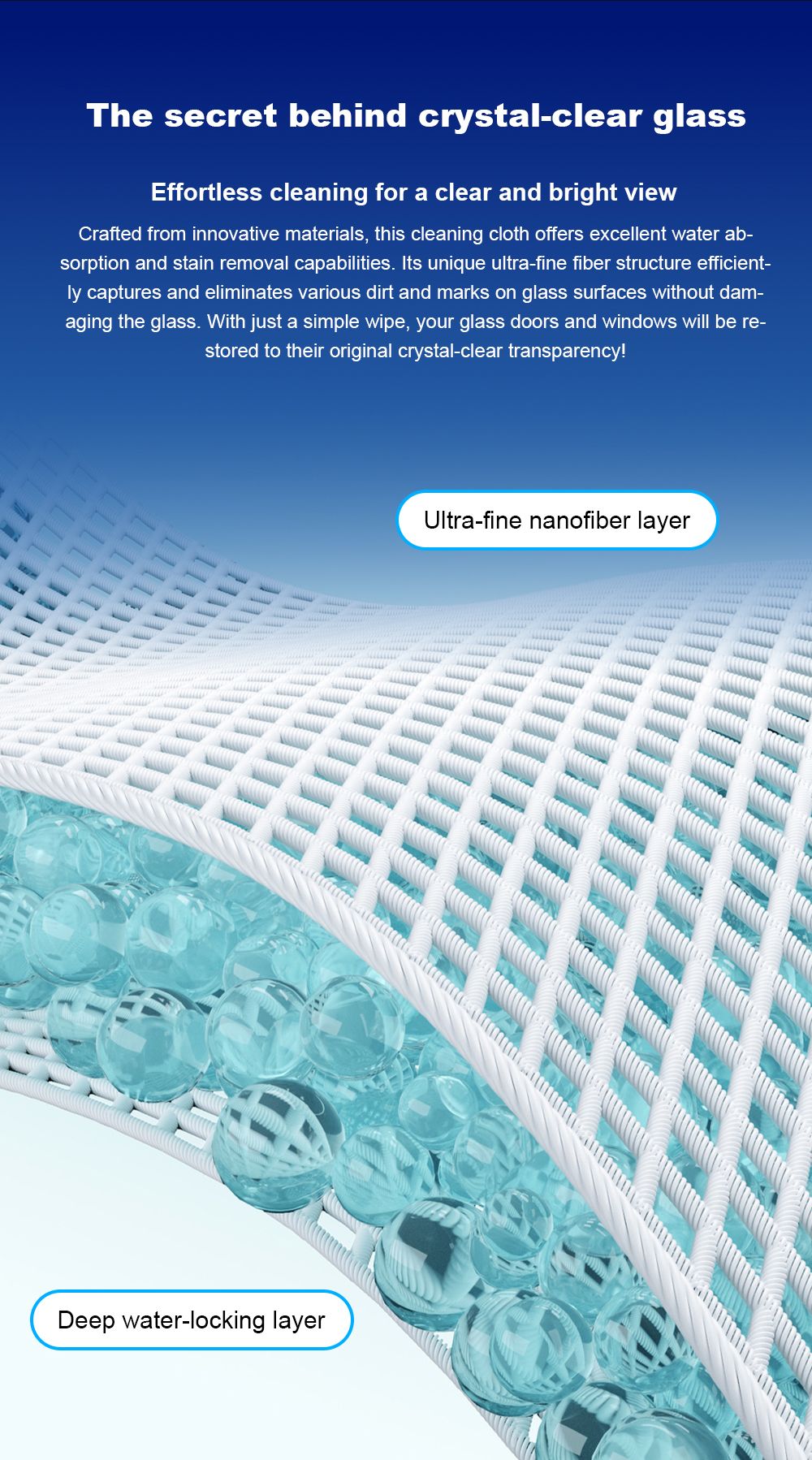 \nHigh-density microfiber wipes lock in water and remove tough stains without scratching the glass, leaving surfaces spotless and streak-free.