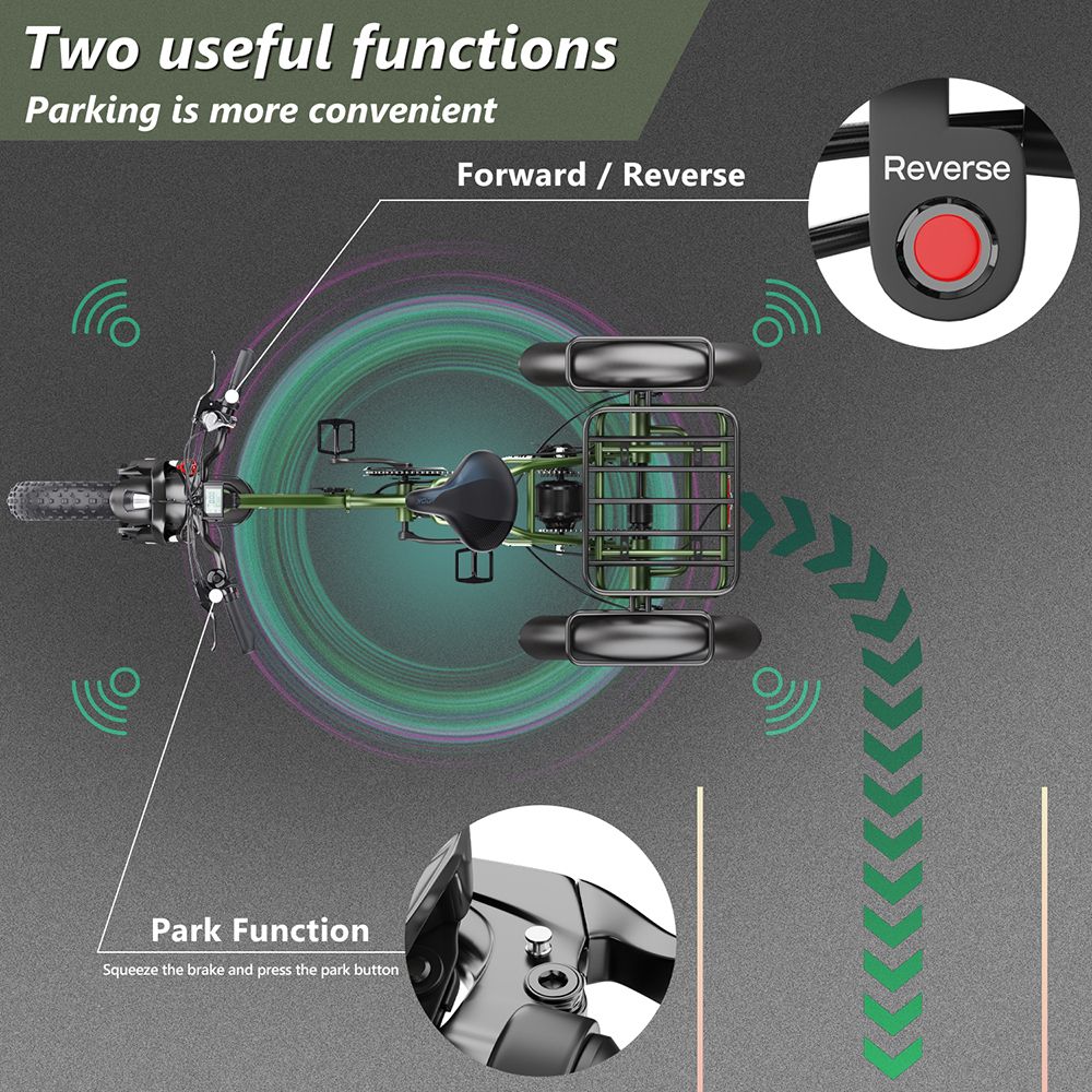 Az alumíniumötvözet váz összecsukható a könnyű tárolás és hordozhatóság érdekében, így könnyebb és kényelmesebb, mint a hagyományos triciklik.