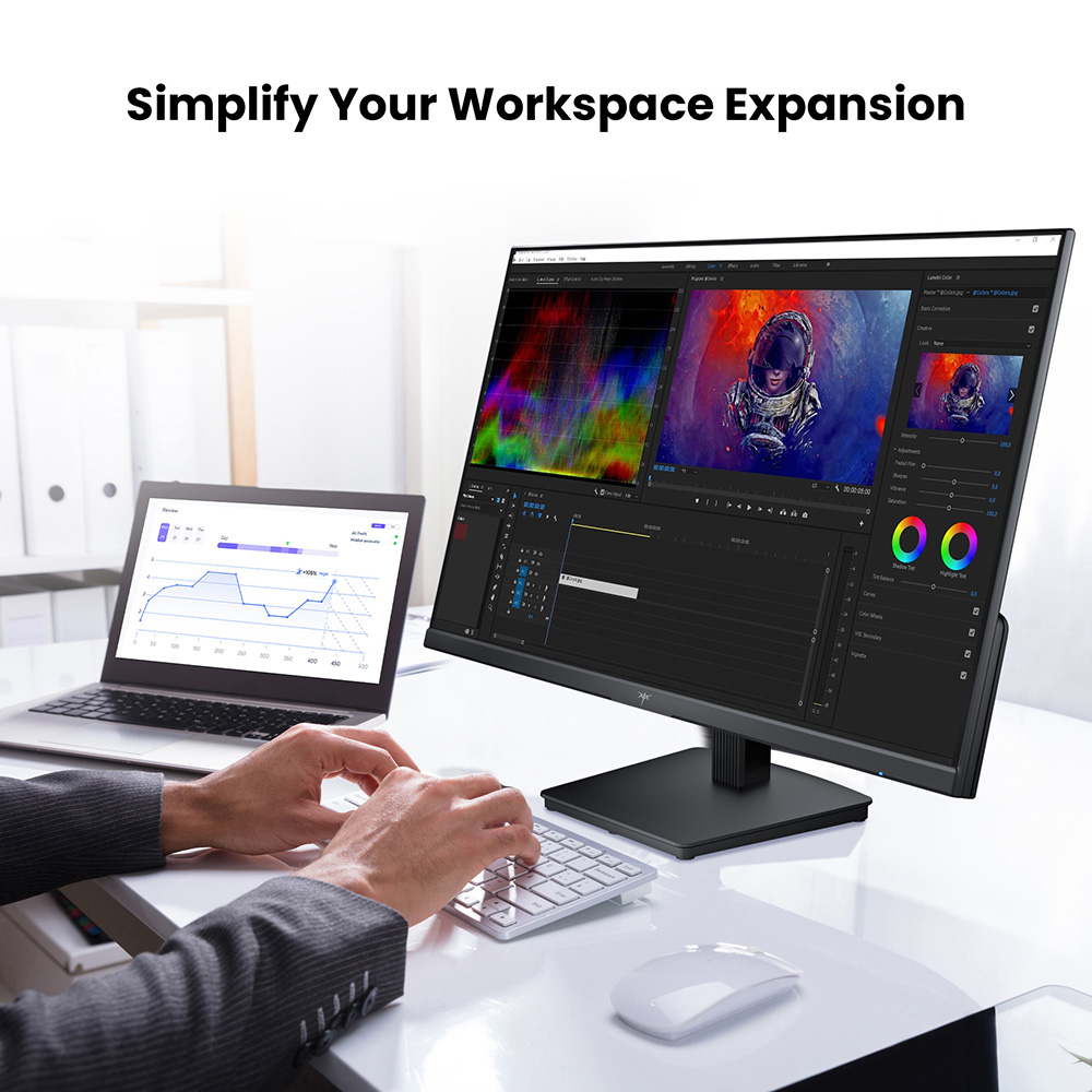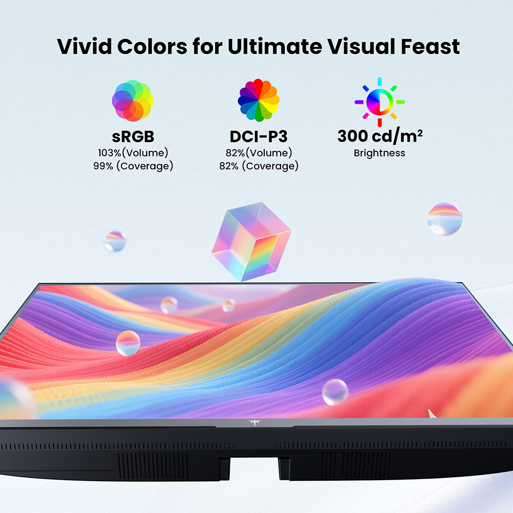 \nDas KTC H24B9 verwendet ein VA-Panel, das durch sein dynamisches Kontrastverhältnis von 4000:1, 99% sRGB-Farbraumabdeckung, 16,7 Millionen Farbtiefen und 300 cd/m² Helligkeit lebendige Farben und klare Bilddetails liefert.Es eignet sich perfekt für kreative Arbeit, Büroaufgaben und Multimedia-Unterhaltung.