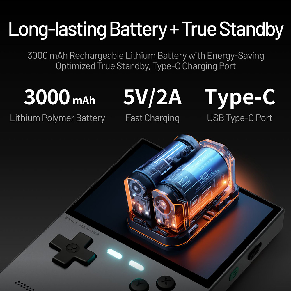 Equipped with a quad-core 64-bit Cortex-A55 processor with a clock speed of up to 2.0GHz, ensuring smooth operation of all games and applications. A 4000mAh polymer lithium battery provides up to 6 hours of continuous entertainment.