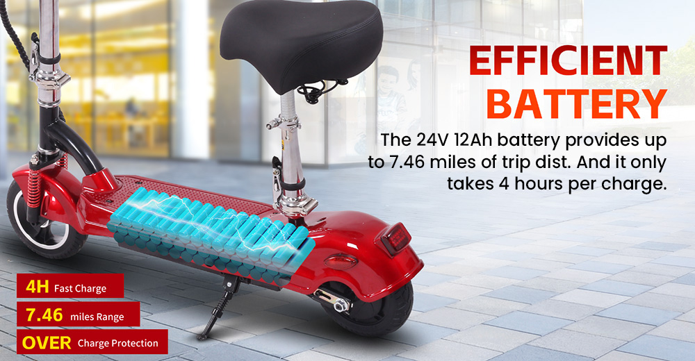\nA beépített 24V 12Ah újratölthető akkumulátor egyetlen töltéssel 12 km hatótávolságot kínál.A gyorsabb töltés és a nagyobb energiahatékonyság kényelmesebbé teszi utazását.