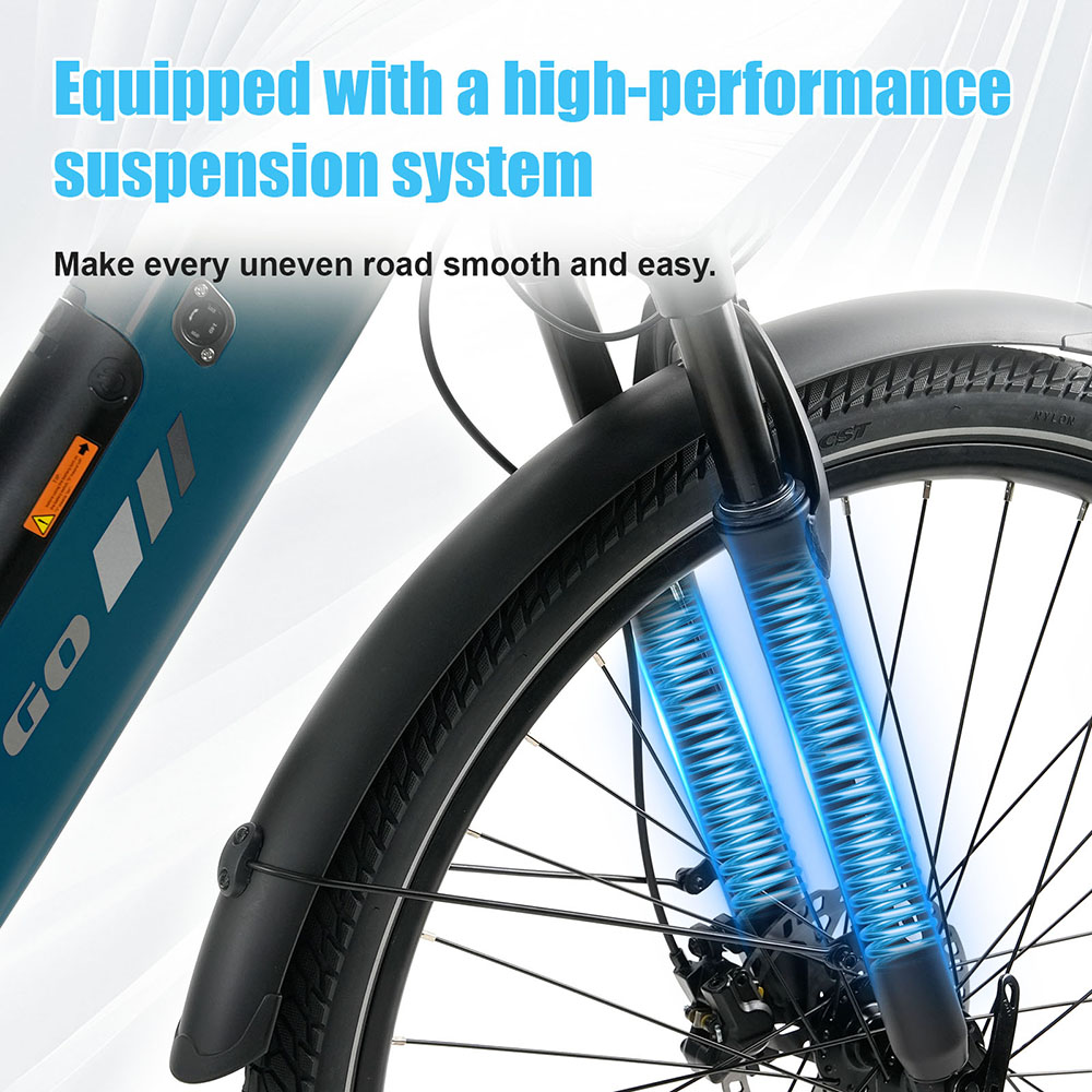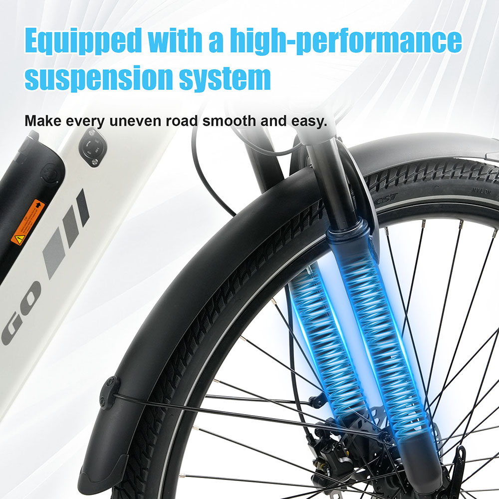 \nStrong hydraulic disc brakes and a shock-absorbing front fork effectively absorb bumps, adapting to city roads, gravel roads, and light off-road conditions. Maintain greater confidence in handling whether commuting or leisurely riding.