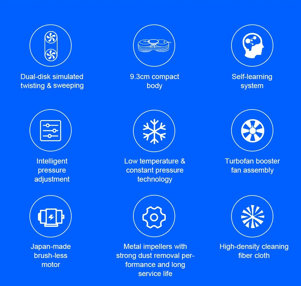 \nNincs több elakadás.Könnyen átmászik a küszöbökön és a szőnyegeken 20 mm-ig.A nagy teljesítményű gördülőkefe mélyen belemélyed a szőnyegekbe és a kemény padlókba, míg a 330 × 100 mm-es vékony test a kanapék és ágyak alá csúszik a teljes, saroktól sarokig történő tisztítás érdekében.