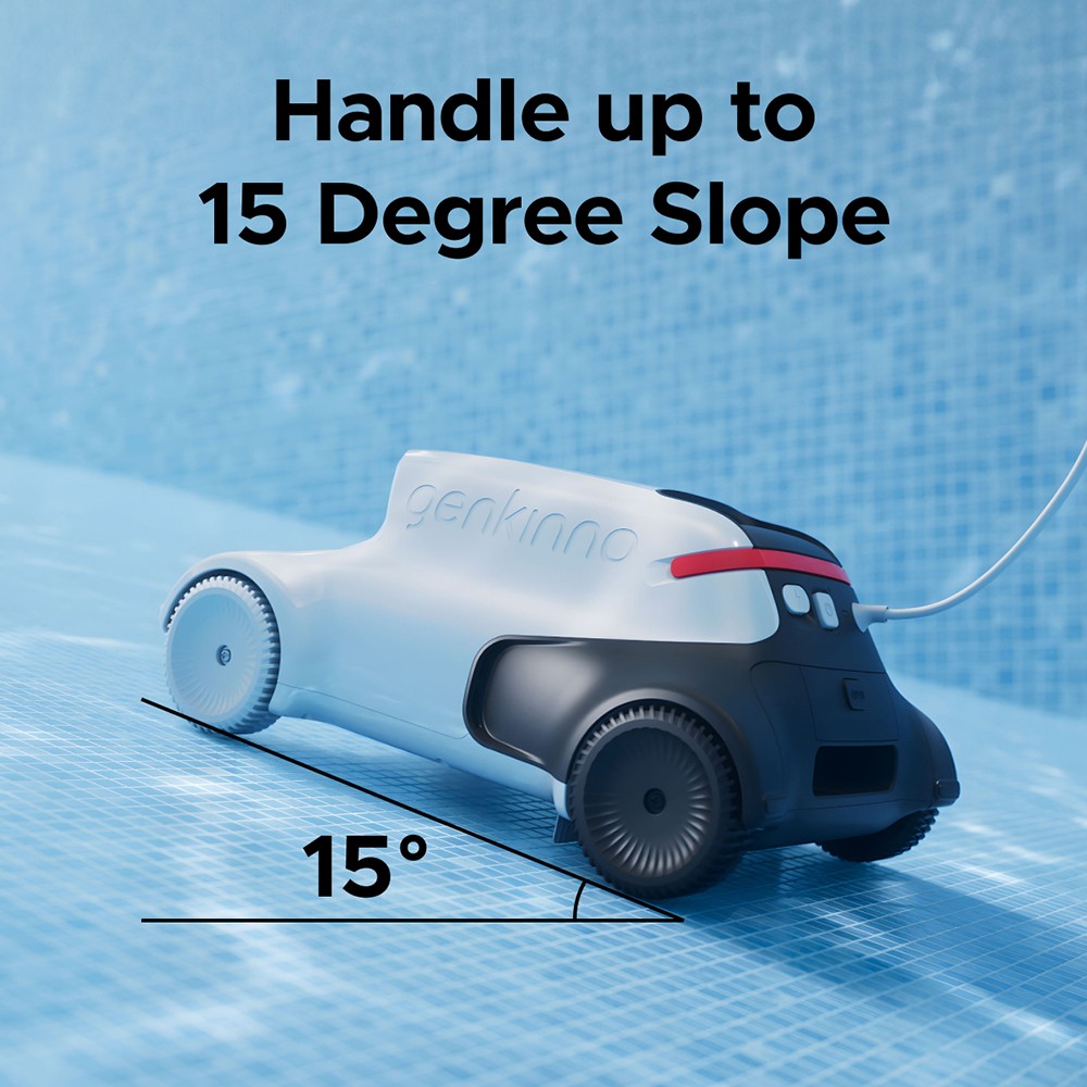 \nGenkinno P2 pool vacuum ensures comprehensive cleaning results across all different pool types. With a perfect blend of gyroscope and accelerometer hardware, coupled with intelligent algorithms, our system ensures precise navigation. With AdaptiveNav technology, every nook and cranny of your pool receives the attention it deserves.