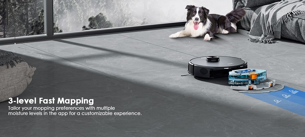 \nDites adieu à la saleté tenace.Avec une forte aspiration de 6000 Pa, il élimine en quelques secondes la poussière cachée dans les interstices du sol, les poils d'animaux et les débris quotidiens.La base à vidage automatique de 17 kPa stocke jusqu'à 70 jours de poussière pour vous – pas de désordre, pas de contact avec la saleté, et plus de vidage fréquent.